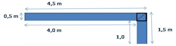 Например, есть прямой переливной лоток размером 4 м внутри, угол и еще один лоток длиной 1 м, как показано на рисунке.