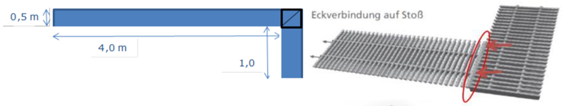 Если вы считаете эту решетку по прямым внутренним размерам (здесь 5,0 м), все равно надо будет добавить стоимость для углового элемента (материал и работы), цена углового элемента будет состоять из 1 метра (2x 0,5 м) решетки и цены добора.
