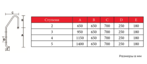 Лестница для бассейна из нерж. стали класса AISI 304 или AISI 316