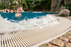 Как правило, решетка измеряется и рассчитывается по внешнему краю переливного лотка (здесь 4,5 м и 1,5 м), чтобы был включен материал углового среза.